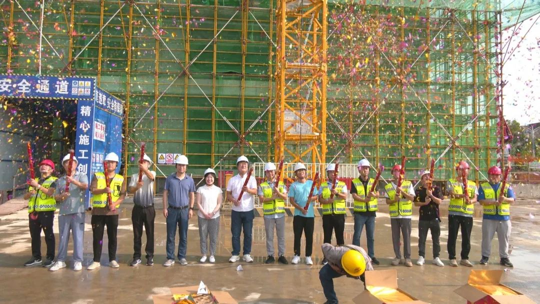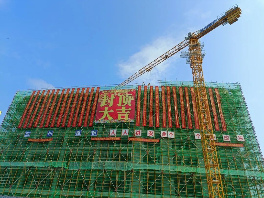 自2022年9月26日開工建設(shè)以來,建投集團(tuán)組織精干隊伍,派駐優(yōu)秀技術(shù)骨干,投入先進(jìn)機械設(shè)備,全力按高起點、高標(biāo)準(zhǔn)、嚴(yán)要求推進(jìn)項目建設(shè)。于2022年底前完成了深基坑開挖及支護(hù)工程,為項目主體施工奠定了安全、堅實的基礎(chǔ)。主體結(jié)構(gòu)施工中采用大跨度、高支模及后張法預(yù)應(yīng)力梁工藝,秉承“安全第一、預(yù)防為主、綜合治理”的安全生產(chǎn)方針,堅持安全是根本、質(zhì)量是生命的發(fā)展理念,全力推動項目建設(shè),克服困難,承壓奮進(jìn)。最終歷時10個月,于2023年8月6日圓滿完成主體結(jié)構(gòu)封頂。
