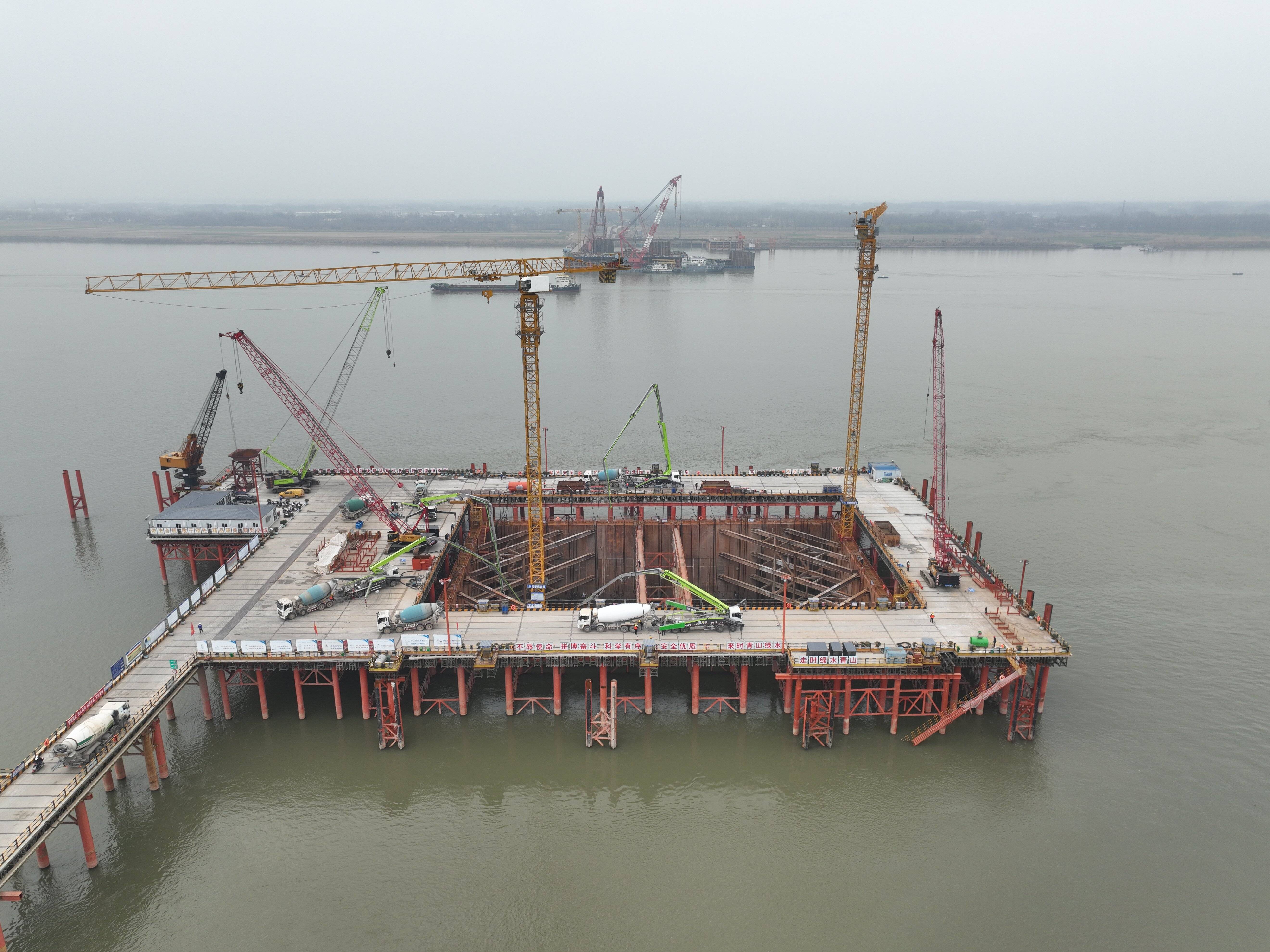 3月17日上午,皖江之畔,由建投集團(tuán)承建的池州長江公鐵大橋南岸4號主墩迎來新年首個節(jié)點(diǎn)。歷時約90個小時的連續(xù)施工,大橋4號主墩承臺首次混凝土澆筑順利完成,也是全橋首次進(jìn)行主墩承臺澆筑混凝土,標(biāo)志著池州大橋南岸率先轉(zhuǎn)入承臺施工,為后續(xù)施工奠定了良好基礎(chǔ)。