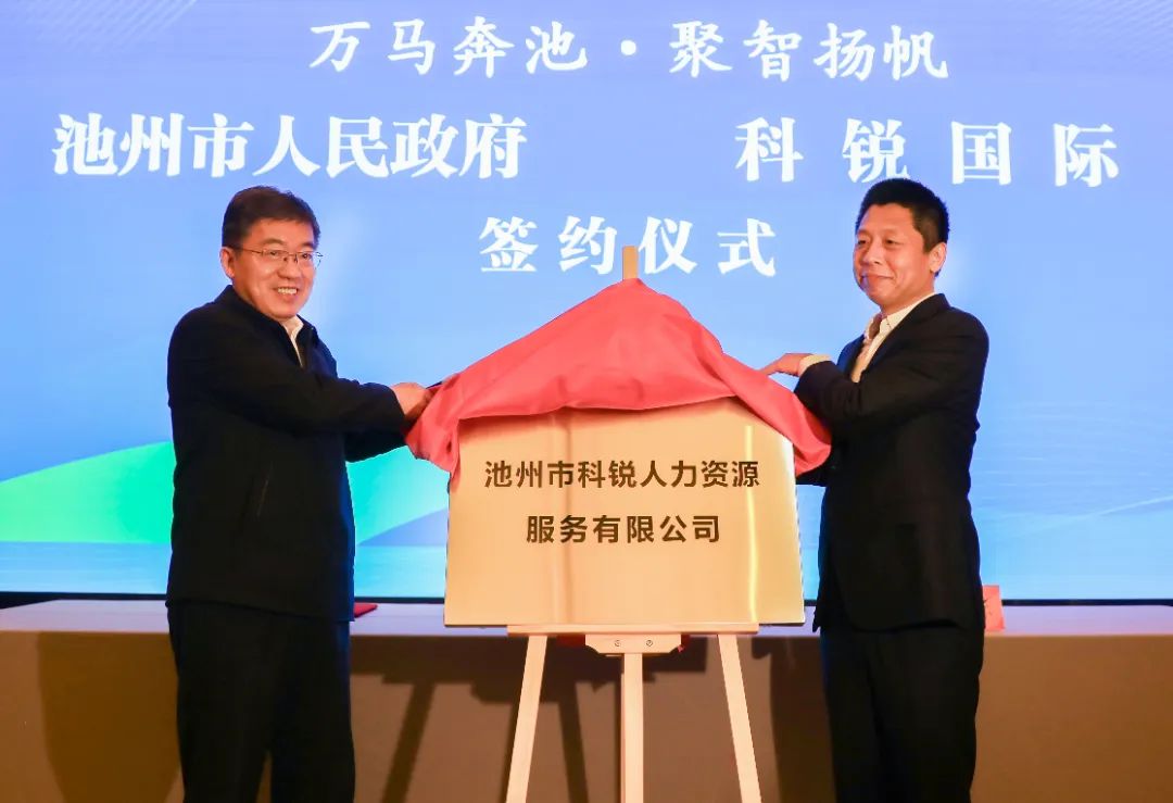 4月2日上午,池州市政府與科銳國際合作交流座談會暨合作項目簽約儀式舉行。市委書記朱浩東、科銳國際董事長高勇出席并講話,共同為池州市科銳人力資源服務(wù)有限公司揭牌。市領(lǐng)導史孺牛、廖強、李軍等參加。